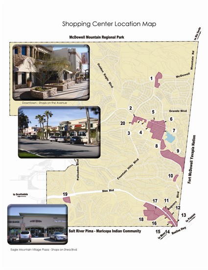 - Eagle Mountain Village Plaza (82,712 square feet) - On Shea Boulevard at the southwest edge of Fountain Hills (Anchored by Fry's)
